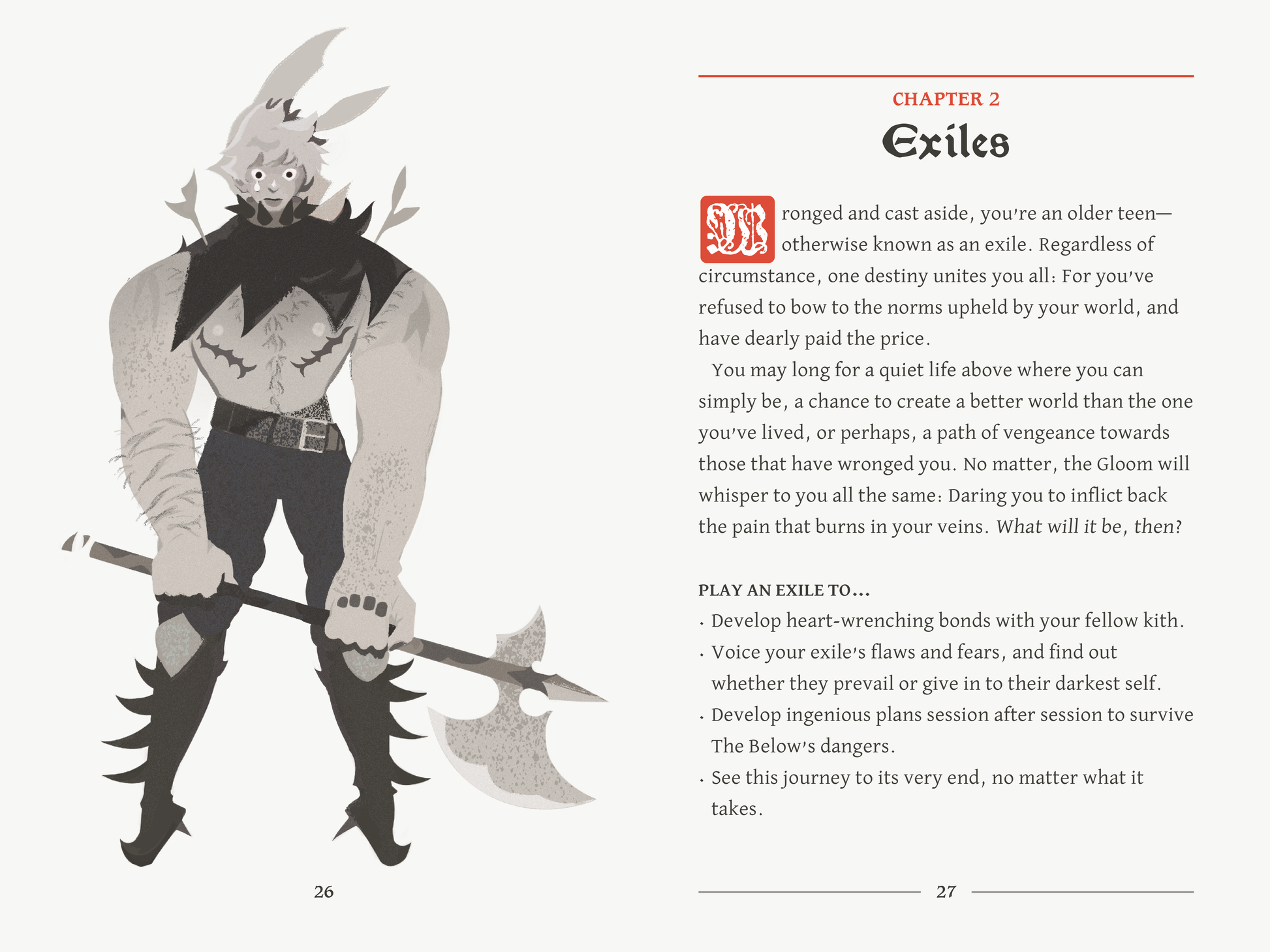 You are an Exile. A teenage misfit who barely ekes by at society’s edge. You grew up in a world that cast you aside and deemed you perverse. You learned to hide or fight, never able to live free.